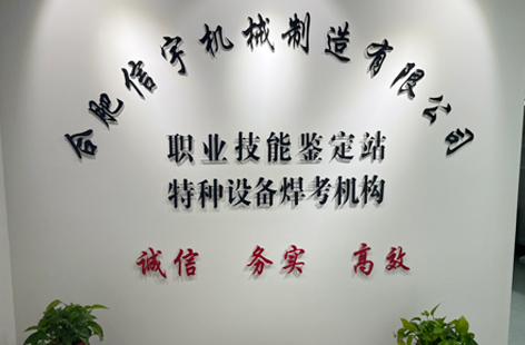 合肥信宇機械制造有限公司成立于2011年9月,隸屬于合肥輕工業機械有限公司。公司具 有獨立法人資格,辦公地點位于合肥潛山路245號華地金融中心B座712室面積為136平方米, 有工作人員6人,有建全的財務管理制度和特種設備焊工考試機構及職業技能鑒定評價體系。 在合肥市經濟開發區繁華大道240號有租賃廠房面積為700多平方米,有理論考試160平米,可 一次進行60多人的理論考試。實操場地為500多平方米,有18個固定的焊工考試工位及一些生 產設備,也進行過鉗工、車工、銑工、電工、焊工、鉚工等工種的考試。廠區還承接各類生產 加工業務,曾多次圓滿完成軍工企業的配套生產任務。